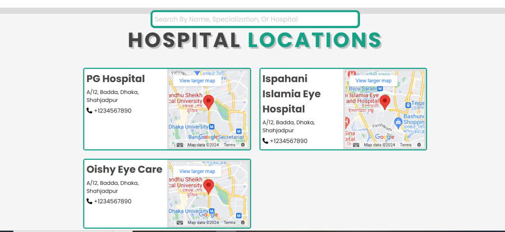 iv) Search and Find: Users can search and find medicines by their names, doctors by their names, hospitals and specialization, and hospitals by their locations and names.