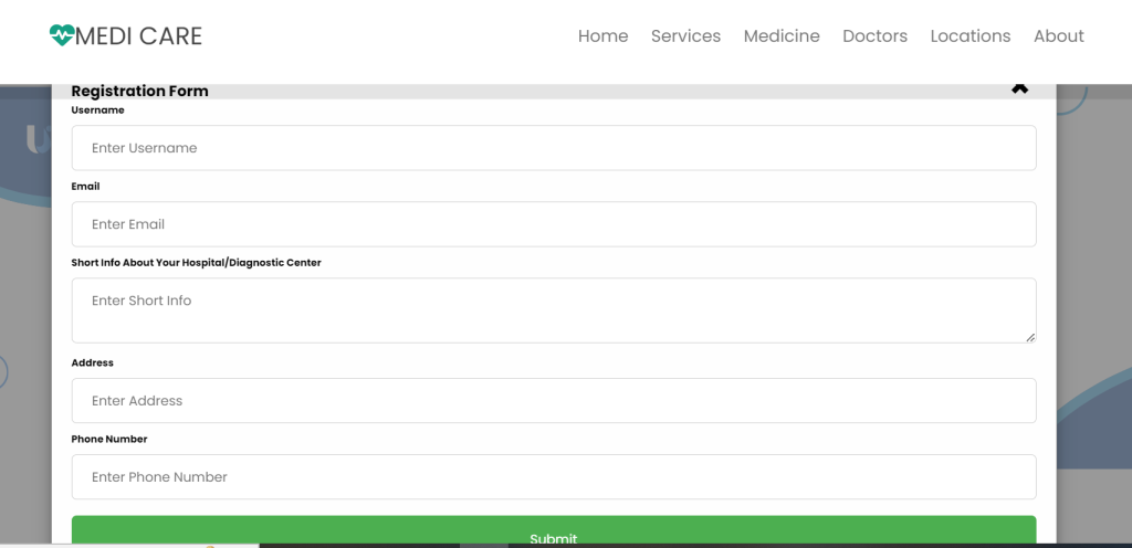 i) Free Checkups: Diagnostic centers can register and offer free or discounted checkups for patients.
